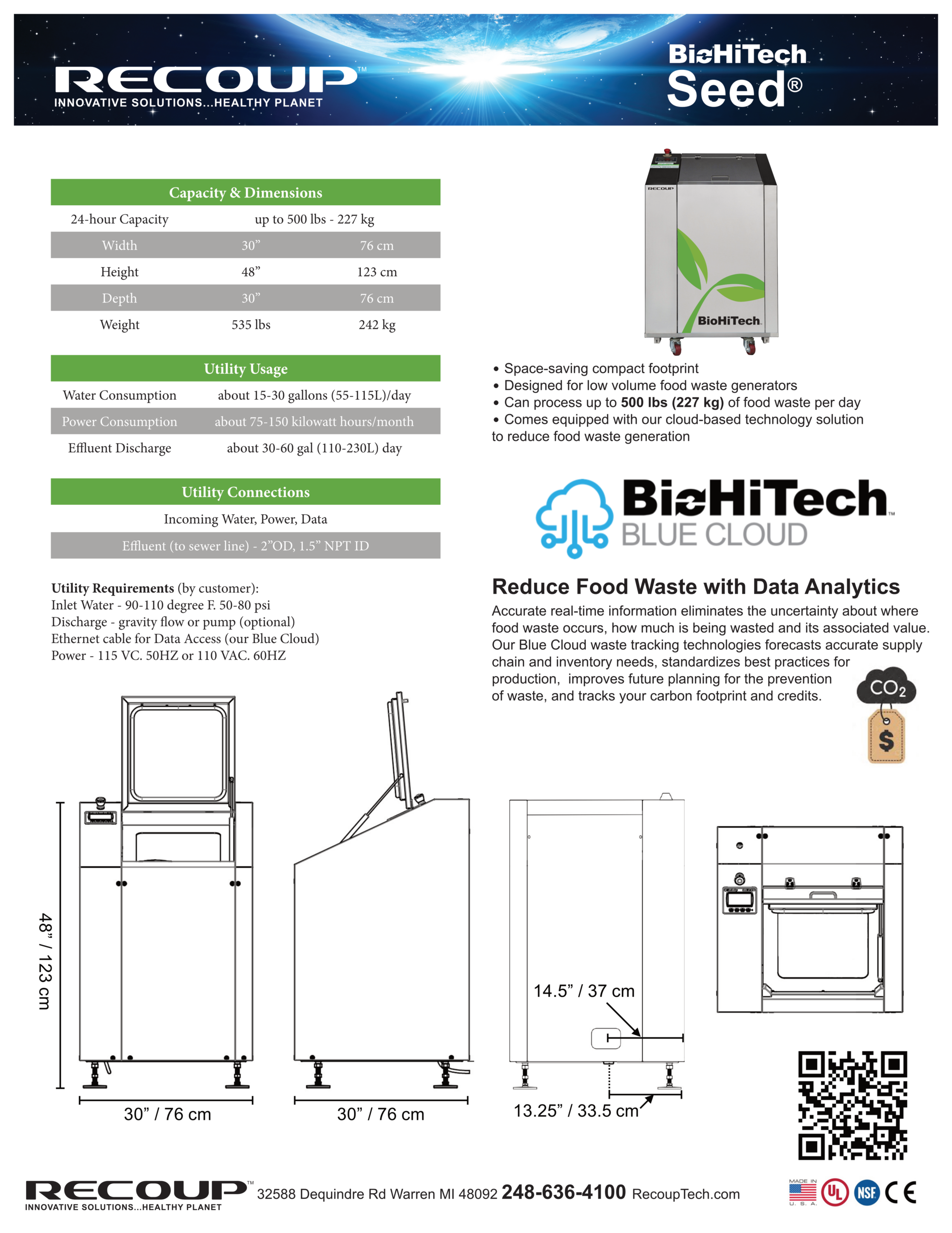 With hundreds of digesters deployed, Recoup Technology is able to classify and identify food waste at the source effectively diverting the waste from landfill, saving our customers millions of dollars, and reducing carbon emissions and harmful methane that contributes to climate change.
