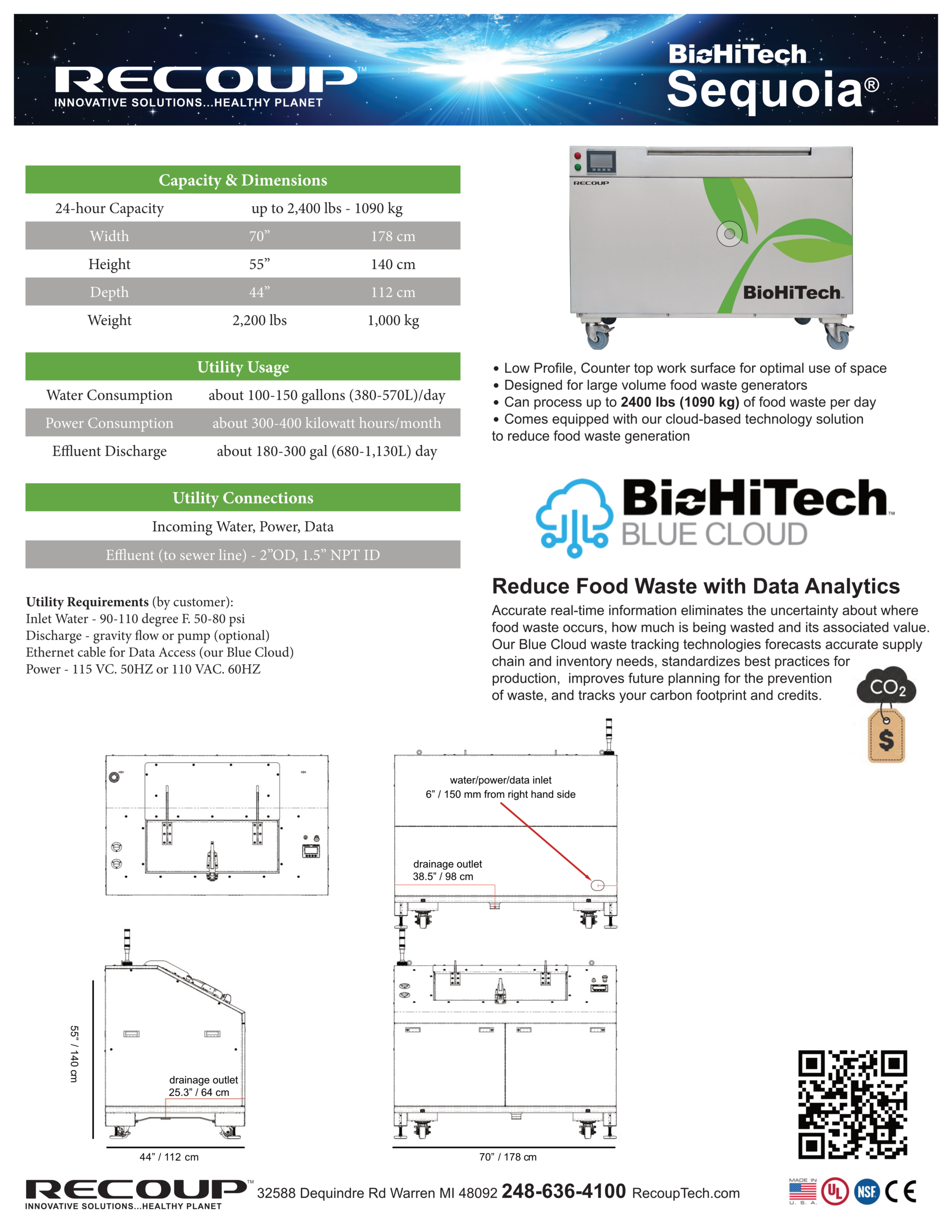 With hundreds of digesters deployed, Recoup Technology is able to classify and identify food waste at the source effectively diverting the waste from landfill, saving our customers millions of dollars, and reducing carbon emissions and harmful methane that contributes to climate change.